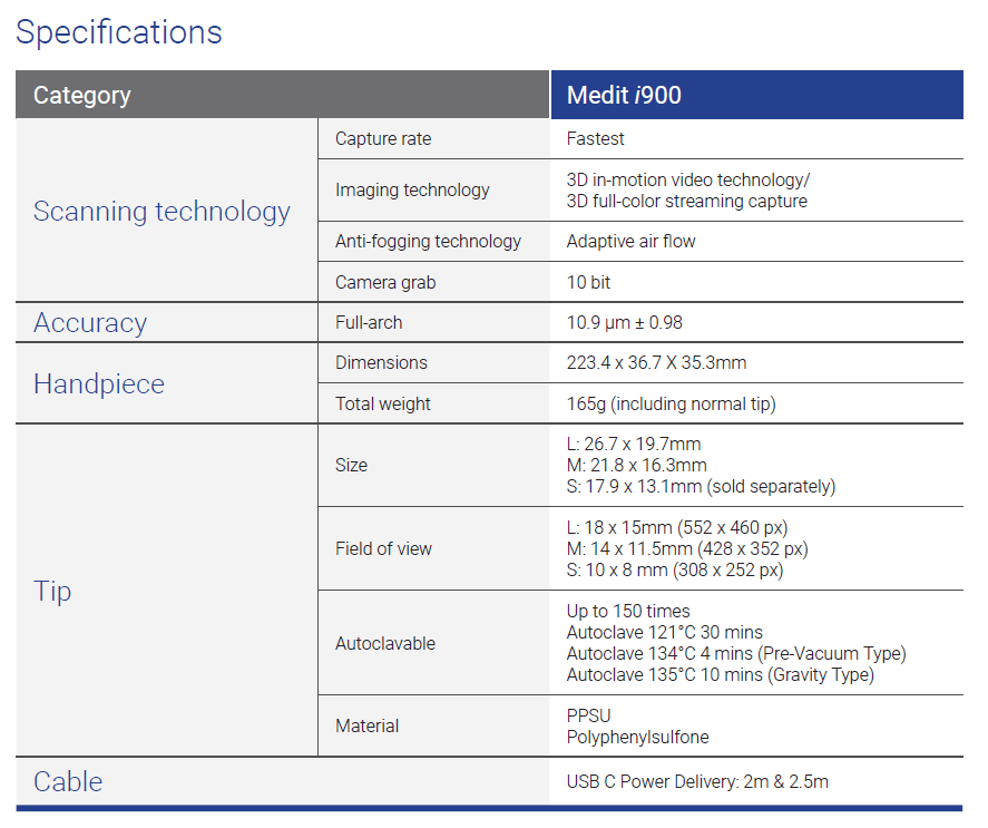Dankzij een krachtig scanvermogen met een ruim dieptebereik leg je zelfs de moeilijkste intraorale details moeiteloos vast – helder, snel en uiterst nauwkeurig. Of je nu kronen, bruggen, implantaten of orthodontie scant, de i900 Classic levert constante prestaties en sluit naadloos aan op je bestaande Medit-software en workflow.